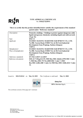 HXF-8 消防員防護服 EC證書